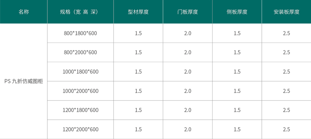 框架九折型材,門板2.0mm,背板、側板1.5mm,安裝板2.5mm。