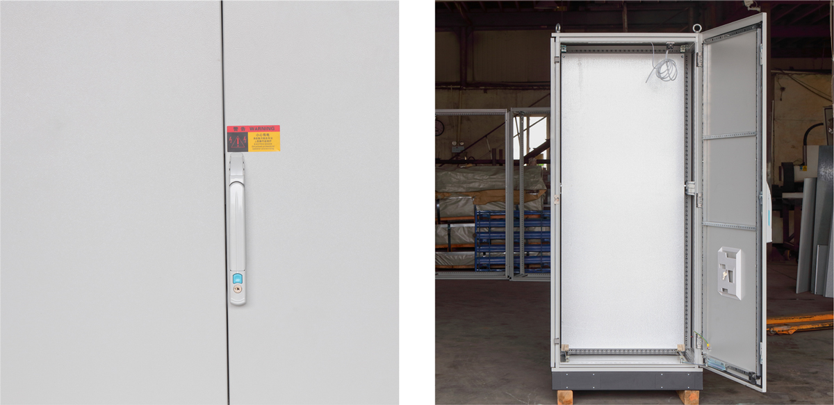 注:表面顏色7035,底座黑色,前門板2.0 厚,側板1.5 厚,安裝板2.5 厚敷鋁鋅,簡易包裝,可開門板全部澆筑阻燃密封條。標準配置,照明燈,行程開關,門限位,資料文件夾。